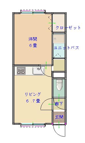 | 1D020 | 38,000円 | なし | 6.7畳&6畳 1LDK | あり | 207 | 1台無料 |