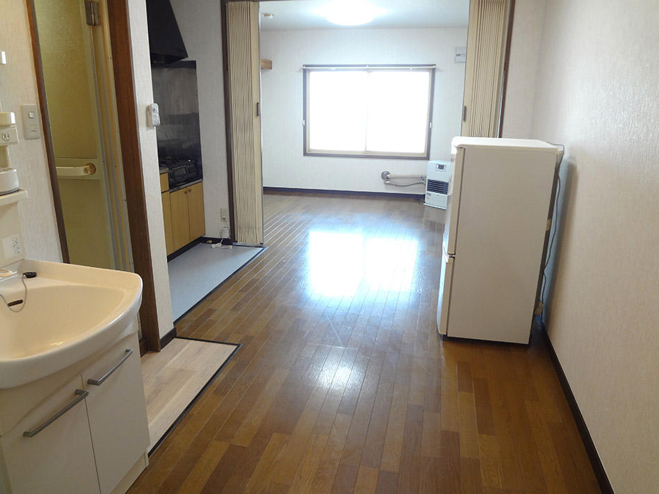 | 設備・サービス | テレビ、冷蔵庫、洗濯機、電子レンジ、ガスコンロ、掃除機、照明器具、灯油ストーブ、ガス給湯器、洗面台、網戸、物干しポール、物置付。 |