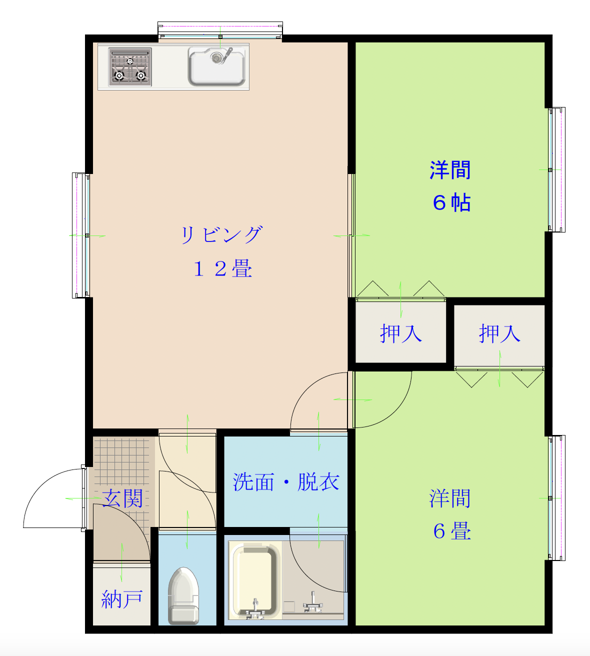 | 2D024 | 40,000円 | なし | 12畳&6畳&6畳 2LDK | なし | 101 | 1台無料 |