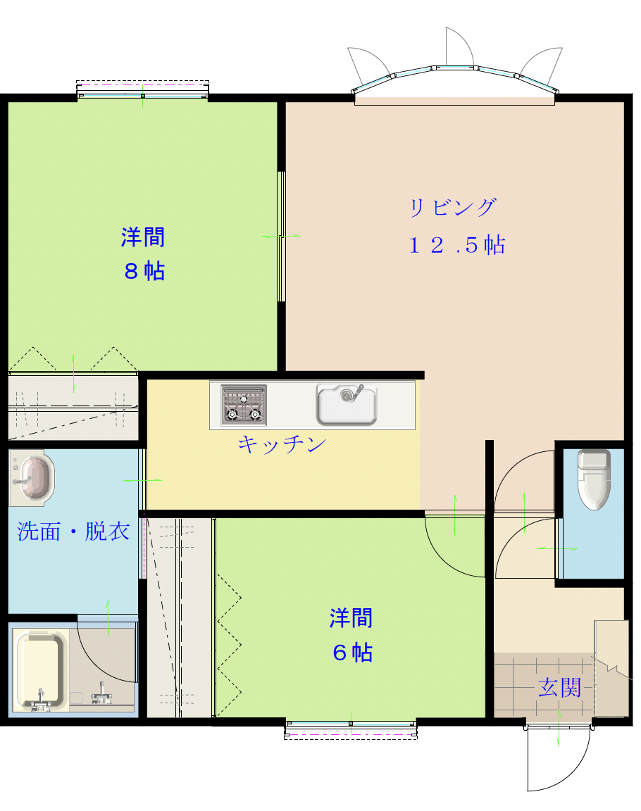 | 2D052 | 65,000円 | 礼金65,000円 | 12.5畳&8畳&6畳&4K畳 2LDK | あり | 105 | 2台無料 |